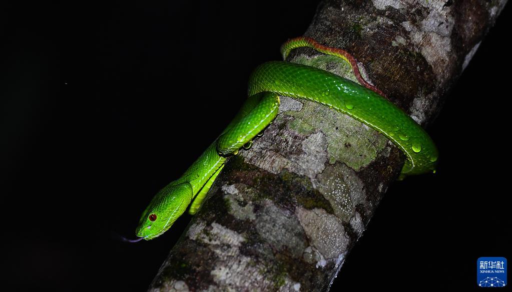 这是在海南热带雨林国家公园吊罗山片区拍摄的福建竹叶青(6月13日摄)。