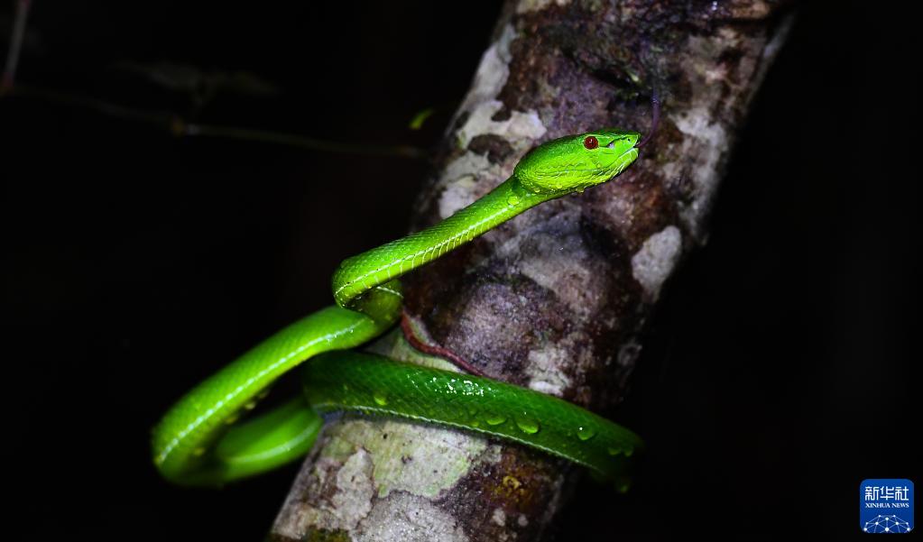 这是在海南热带雨林国家公园吊罗山片区拍摄的福建竹叶青(6月13日摄)。