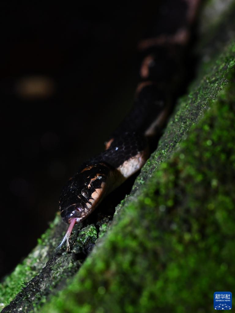 这是在海南热带雨林国家公园吊罗山片区拍摄的粉链蛇(6月14日摄)。