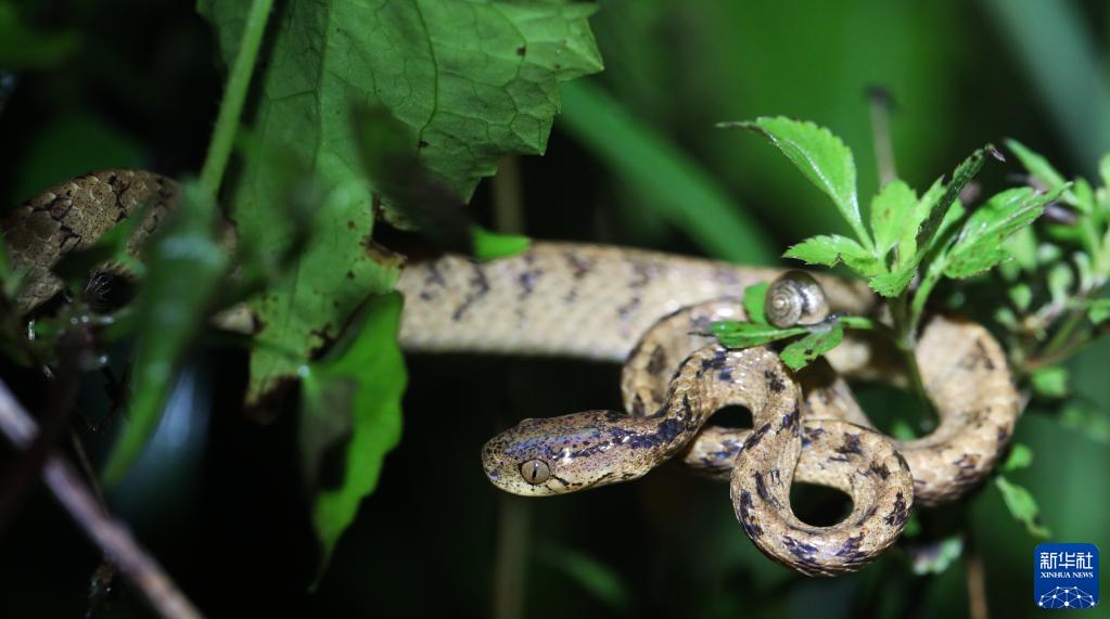 这是在海南热带雨林国家公园吊罗山片区拍摄的缅甸钝头蛇(6月13日摄)。