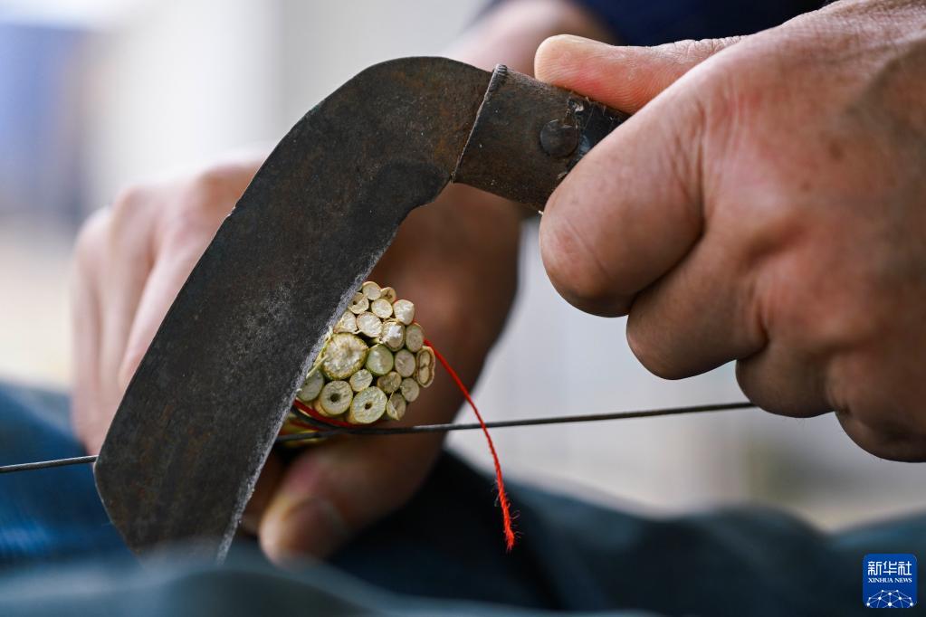荣凤明在家中制作工艺笤帚(6月21日摄)。