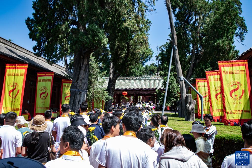 6月22日,人们参加完公祭伏羲大典后进入伏羲庙内献花拜祖。
