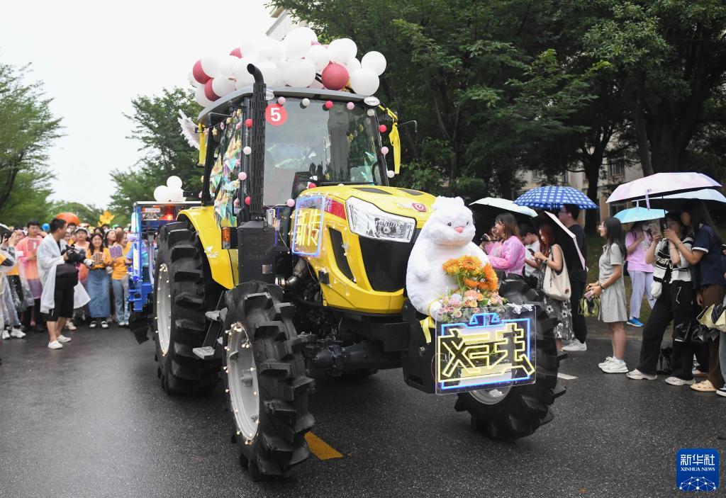 当日,为迎接毕业季,华中农业大学举行了一场花车巡游,学生们簇拥着由现代农机装备组成的花车队伍,在校园里巡游,庆祝毕业、致敬青春。