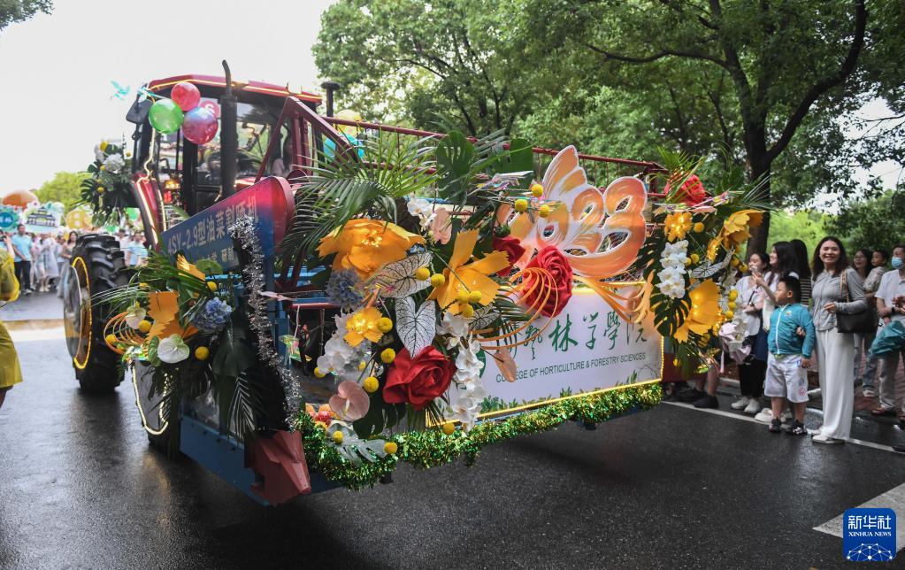 当日,为迎接毕业季,华中农业大学举行了一场花车巡游,学生们簇拥着由现代农机装备组成的花车队伍,在校园里巡游,庆祝毕业、致敬青春。