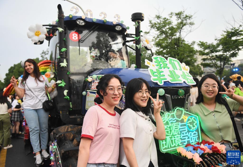当日,为迎接毕业季,华中农业大学举行了一场花车巡游,学生们簇拥着由现代农机装备组成的花车队伍,在校园里巡游,庆祝毕业、致敬青春。