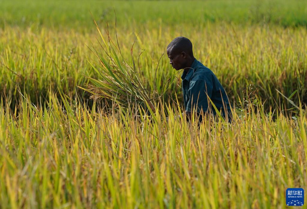 6月20日,在布隆迪布班扎省基航加县,农民在田间收获杂交水稻。