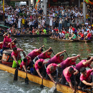 每年端午,这里都会举办观赏性极强的龙船漂移赛。在叠滘龙船漂移赛事中,25米龙船需要满载三四十人在狭窄河道上漂移过弯,场面宛如特技漂移大赛。