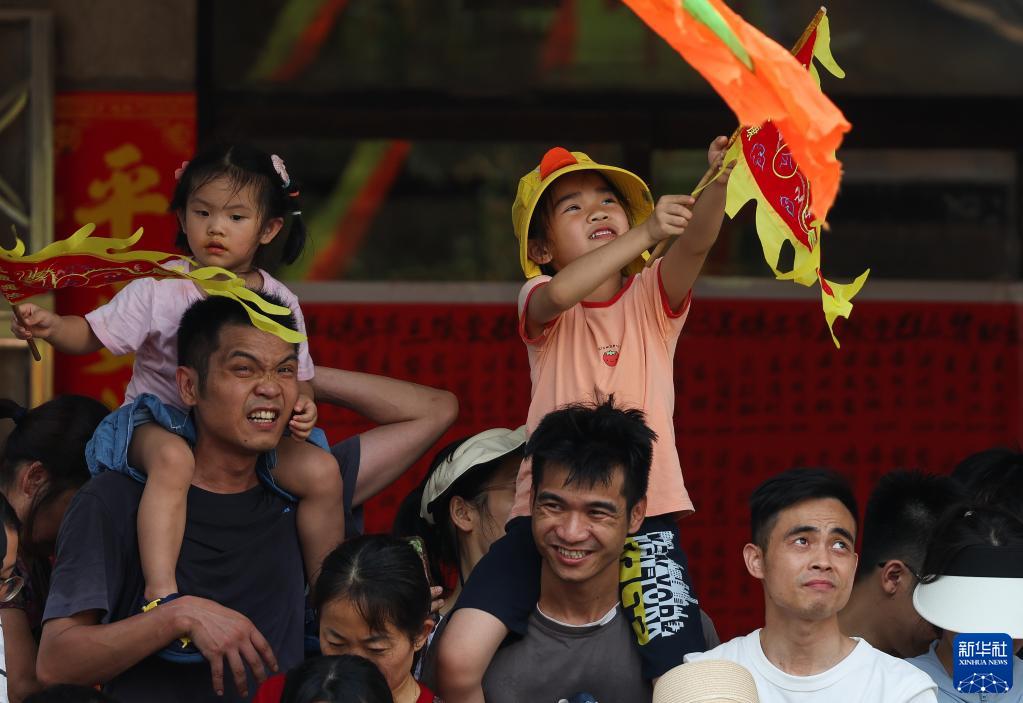 6月22日,观众在佛山叠滘东胜村观看龙船漂移赛。