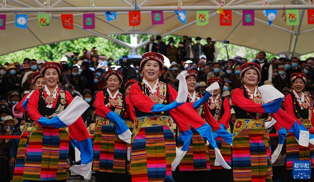 6月22日,拉萨市首届锅庄舞大赛在布达拉宫脚下的宗角禄康公园举办,吸引全市36支队伍参赛。