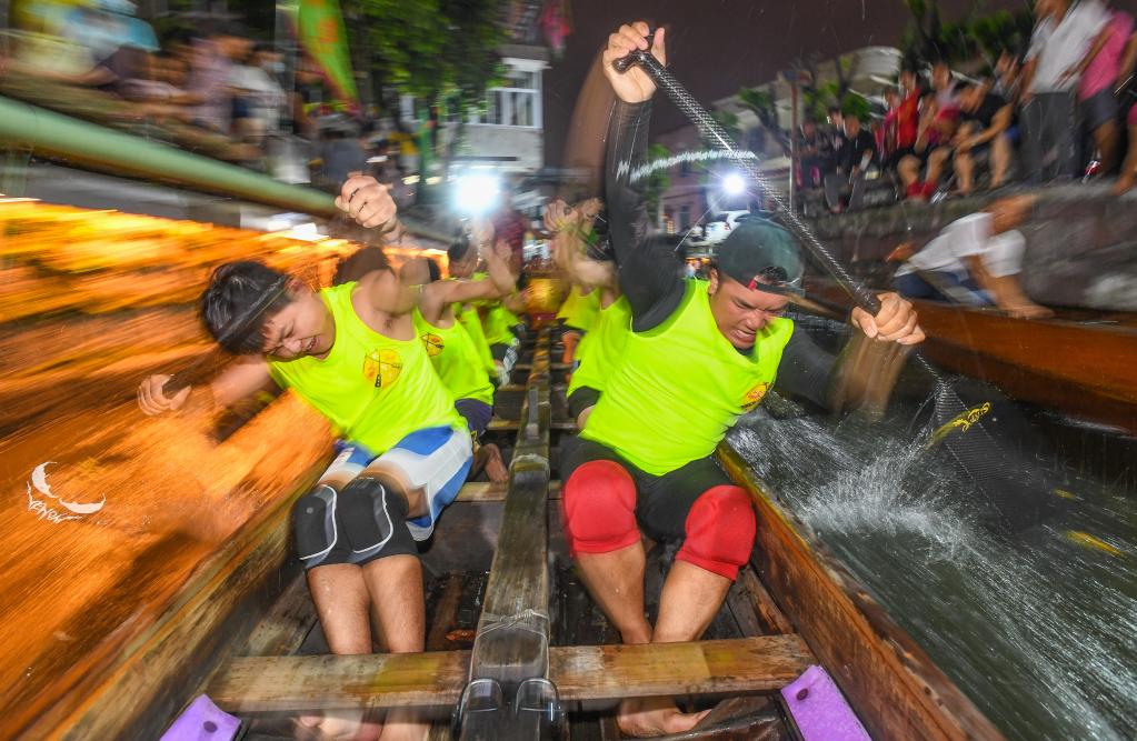 6月22日,一场水上特技表演在天津海河赤峰桥附近举行。