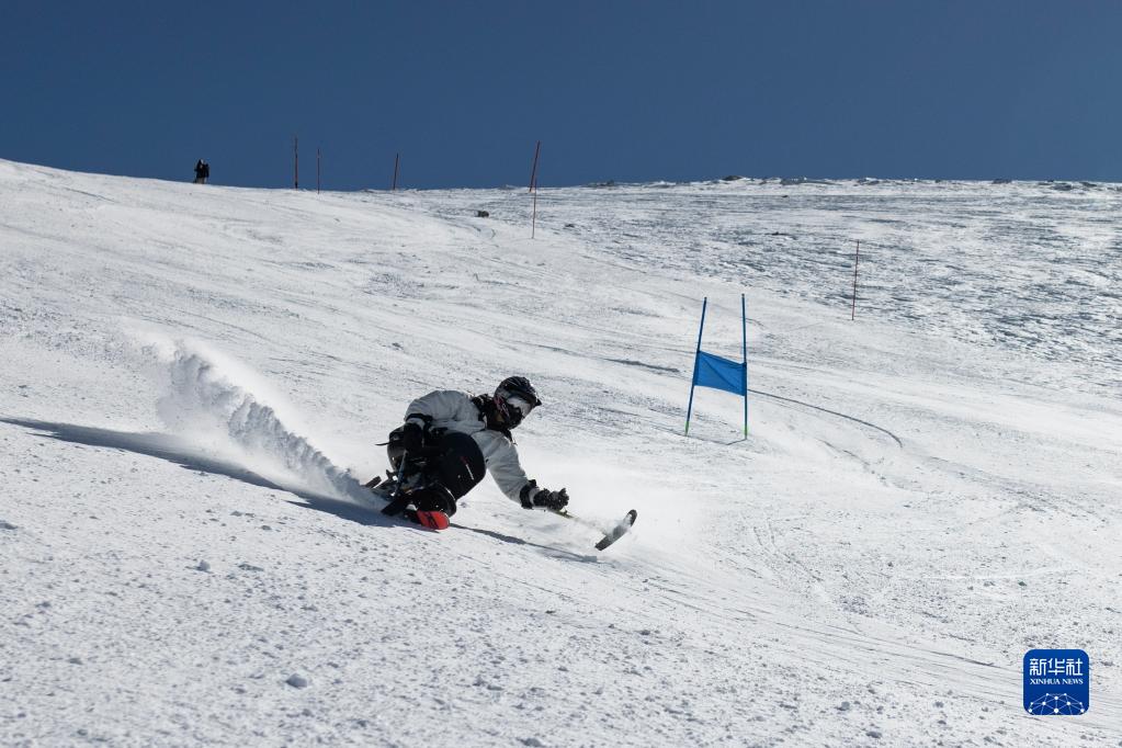 2月19日,在位于希腊中部的帕尔纳索斯滑雪中心,乔治·斯法尔托斯使用获赠的定制坐姿滑雪器进行训练。