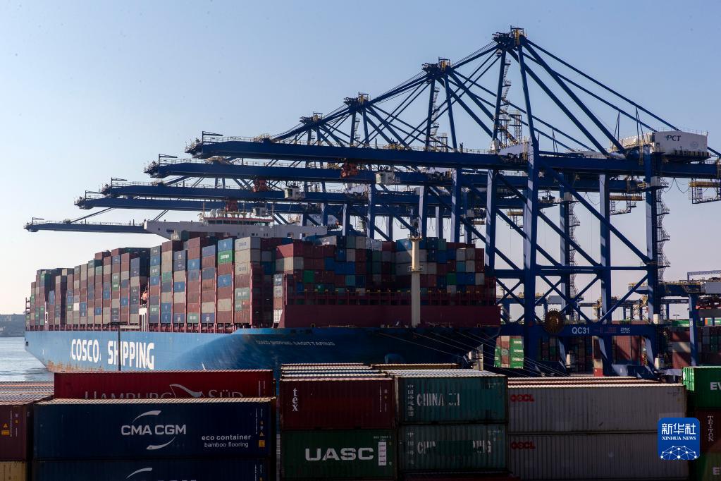 中远海运港口比雷埃夫斯码头有限公司经营的比港三号集装箱码头(2月16日摄)。