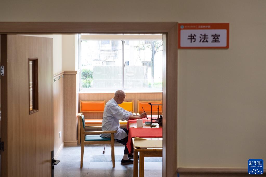 6月20日,老年人在汉寿县汉医养护院练习书法。