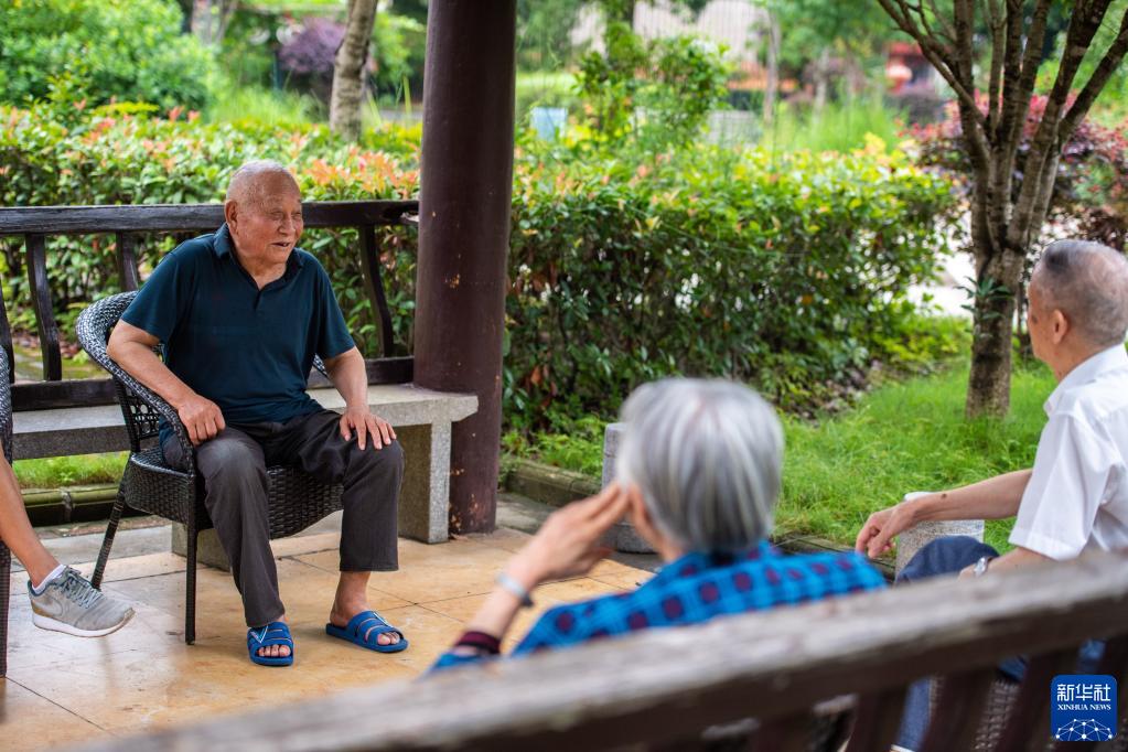 6月20日,老人们在汉寿县社会福利中心聊天。