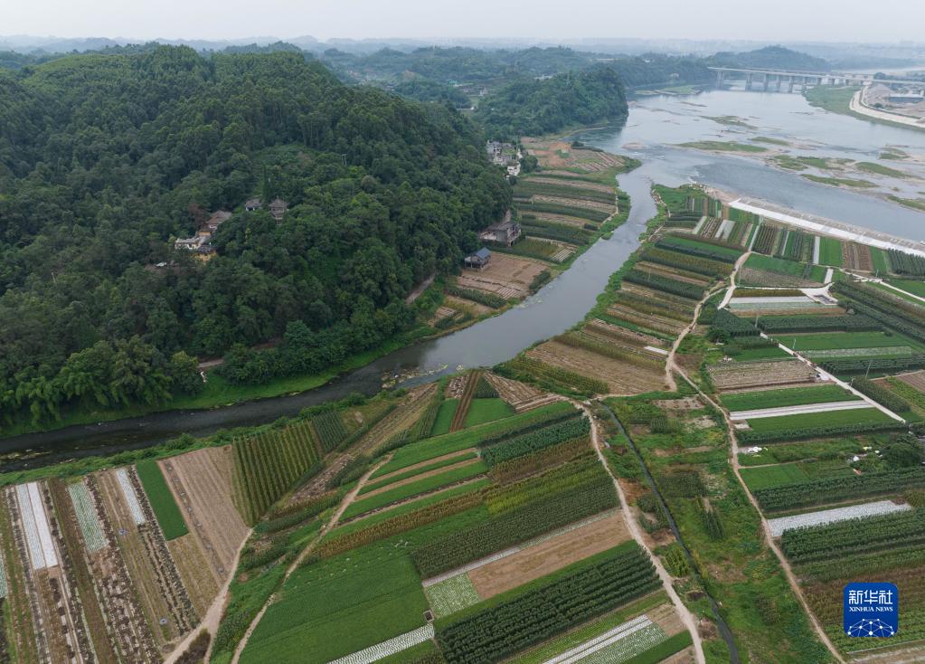 东风堰出水口尾水流入青衣江(6月23日摄,无人机照片)。