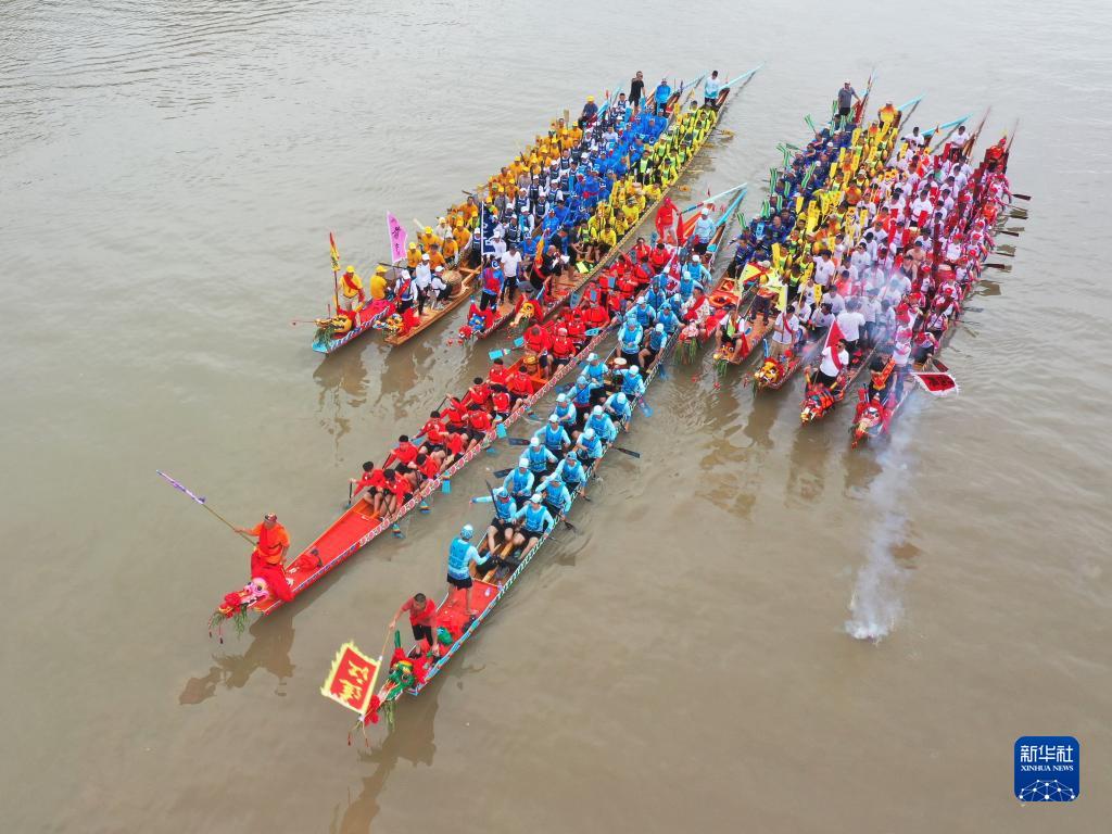 “一桨划过两千载,满江龙舟闹端阳。”6月18日,端午节前夕,一场“龙舟雨”过后天清气朗。在福建省福州市连江县敖江之上,鞭炮齐鸣,人声鼎沸,受邀而来的马祖乡亲们登上连江县赠送的新造福州传统龙舟,与十余支连江当地龙舟队同江竞渡,共迎端午佳节。18岁的马祖小伙陈博勋完成龙舟“初体验”后难掩兴奋,“这是一次很棒的体验!福州的乡亲为我们呐喊加油,十分热情。”