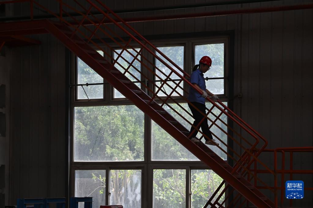 在中国铁路太原局集团有限公司太原机务段太北检修车间,天车司机王淑洁在工作结束后走下天车(6月15日摄)。