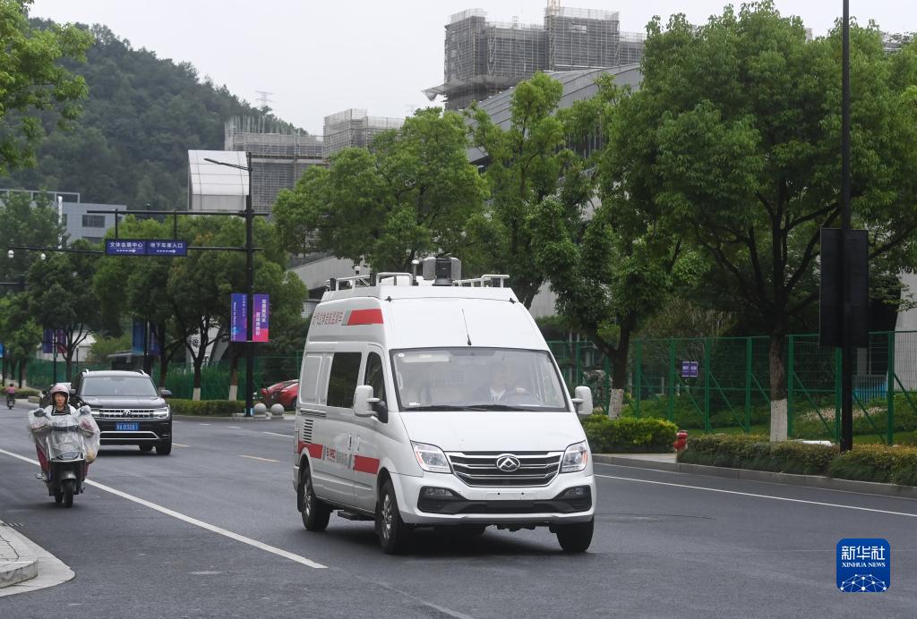 6月25日,在位于杭州临安区的杭州亚运会场馆周边,一辆走航监测车在进行走航监测。走航监测作为大气环境监测的高科技方式,实现在行驶过程中对有机废气物进行快速监测,对污染源进行定位跟踪。