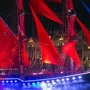 6月24日晚至次日凌晨,俄罗斯圣彼得堡迎来一年一度的“红帆节”。节日期间,冬宫广场上演大型音乐会,一艘“红帆”在漫天烟花的映衬下驶过涅瓦河,庆祝中学生毕业、走向人生新起点。