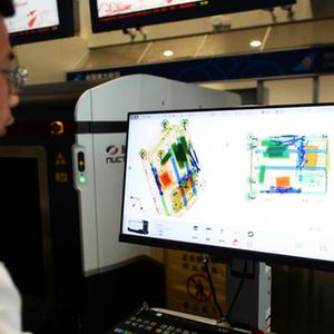 6月25日,在美兰国际机场国内航班安检海关联合查验通道,工作人员在测试设备。