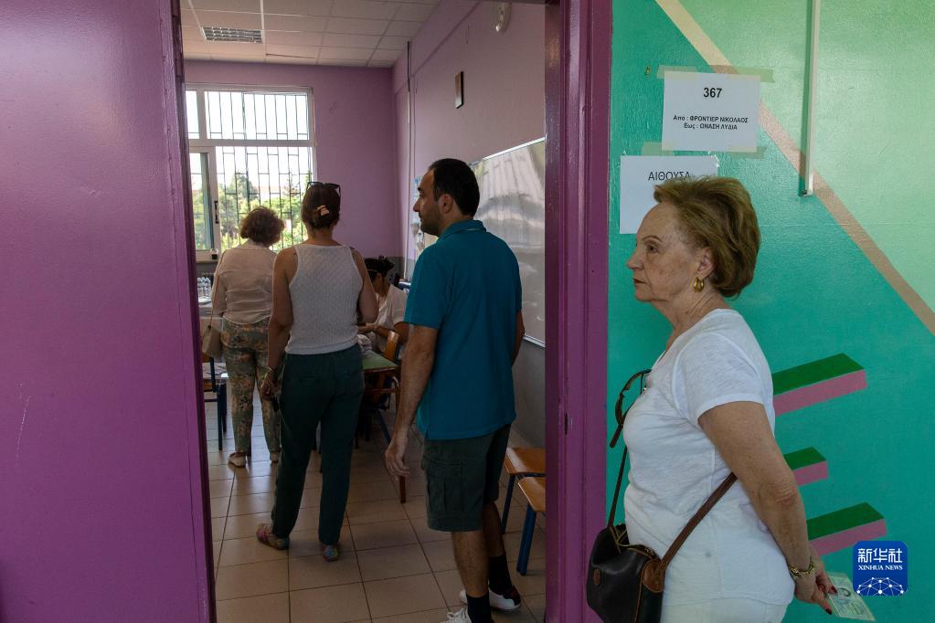 6月25日,人们在希腊雅典一处投票站等待投票。