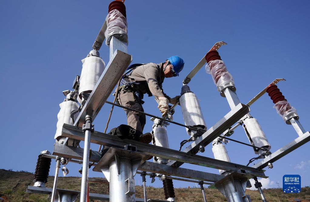 6月25日,工人在云南省会泽县娜姑镇云峰村的光伏项目现场施工。该项目流转土地5000余亩,预计7月底并网发电。