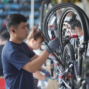 6月25日,工人在唐山市芦台经济开发区一家自行车企业的生产车间工作。