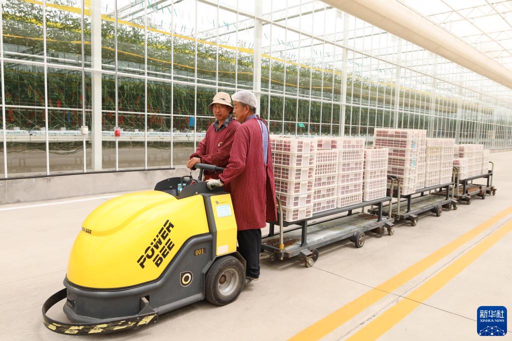 近年来,地处祁连山北麓、河西走廊中段的甘肃省张掖市民乐县充分挖掘戈壁农业资源潜力,大力发展节水农业、旱作农业、戈壁生态农业,建设百亿级现代丝路寒旱农业智能温室产业园。截至目前,该县已建成投用50万平方米的高标准智能玻璃温室,种植的串收番茄销往我国华东、华南等区域。