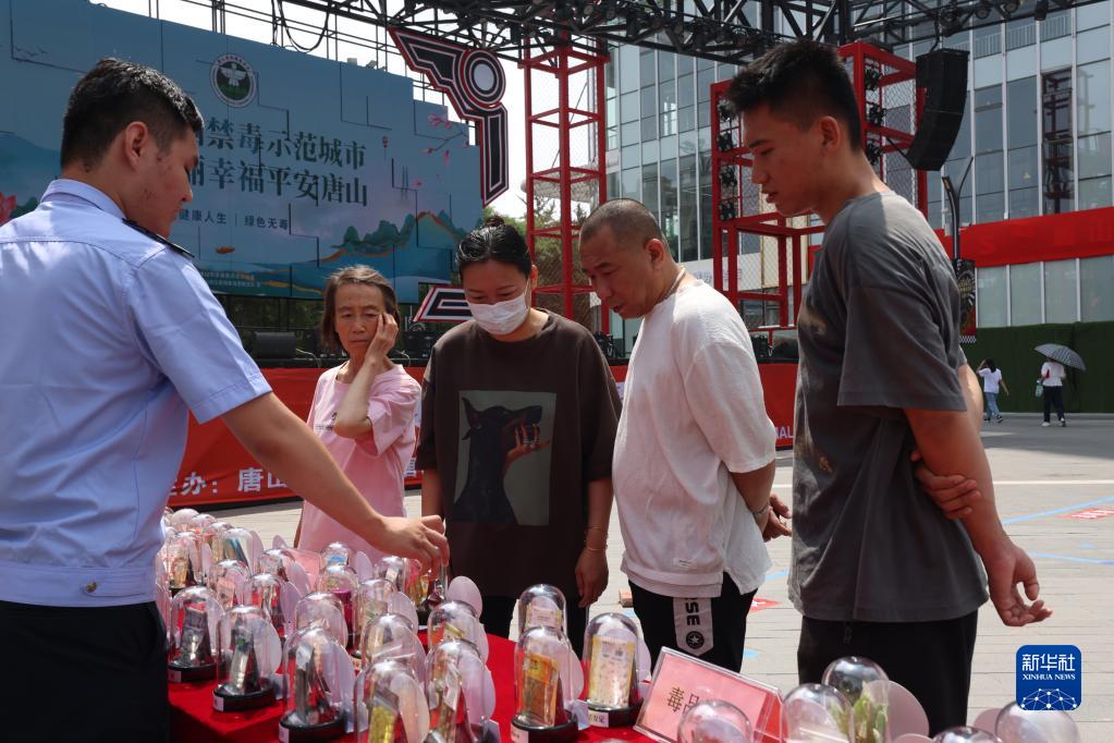 6月26日,民警在河北省唐山市为市民普及常见的毒品及危害。