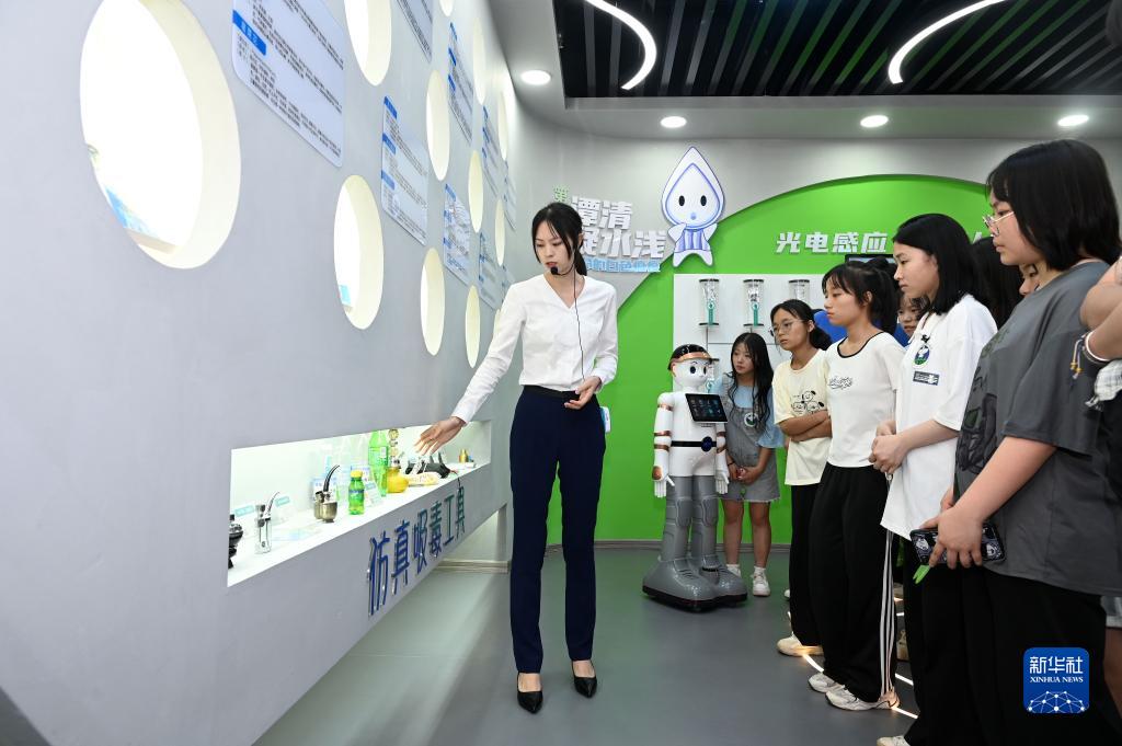 6月26日,在四川省内江市东兴区禁毒教育基地,工作人员向学生讲解禁毒知识。