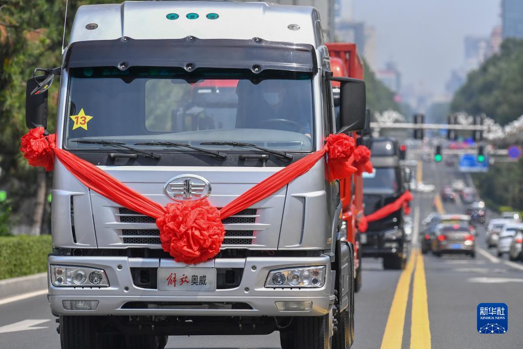 新华全媒+丨70年7代车——从解放卡车“七世同堂”巡游回望“车轮滚滚”旧时光