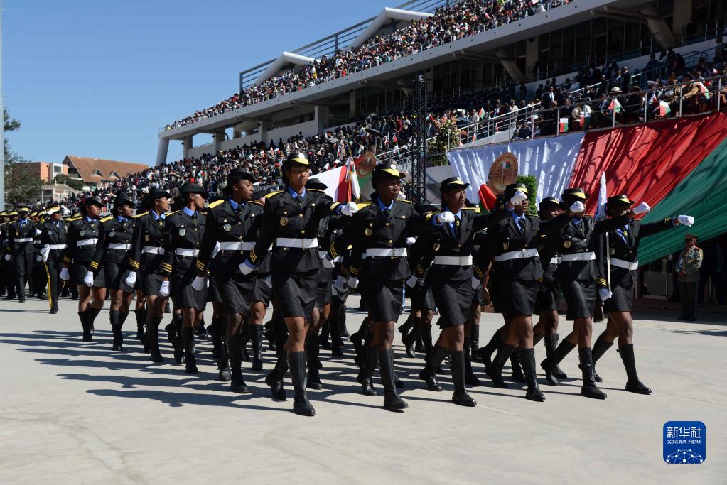 当日,马达加斯加举行国庆日阅兵活动,庆祝独立63周年。新华社发(西塔卡·拉乔纳里松摄)