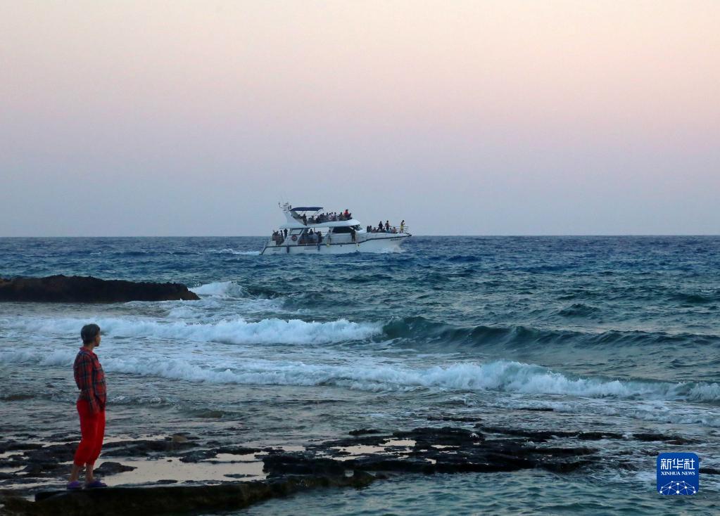 6月26日,一名男子站在塞浦路斯圣纳帕“爱之桥”附近的海滨。