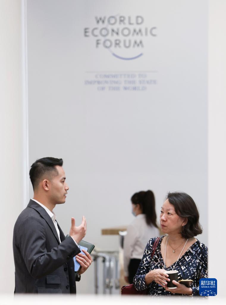6月27日,与会者在第十四届夏季达沃斯论坛现场交流互动。