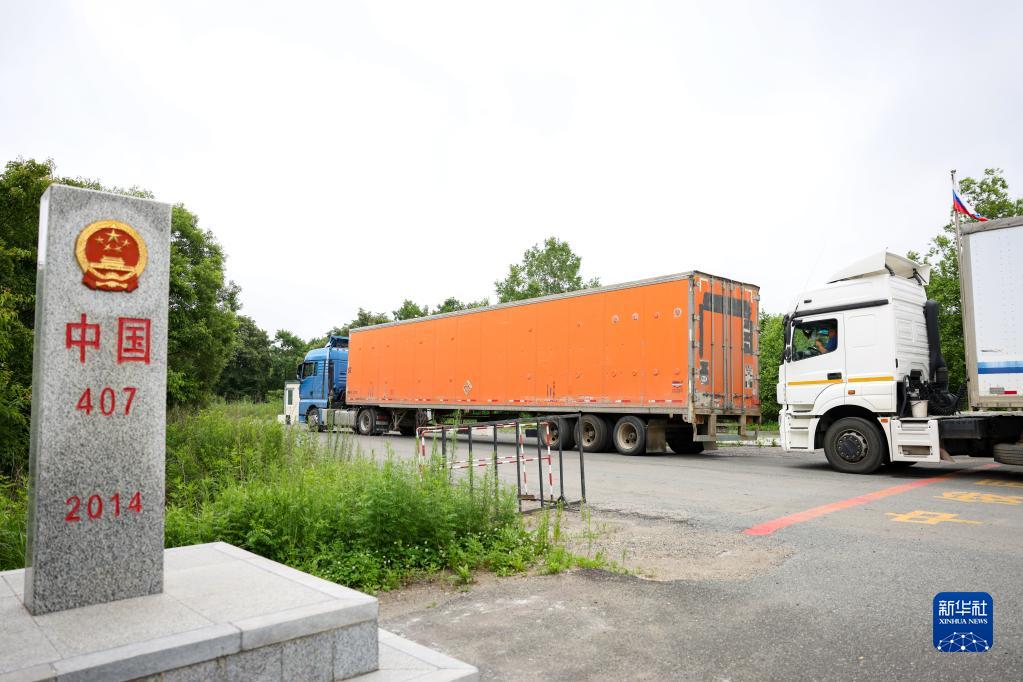 6月26日,货车在珲春公路口岸驶离中俄边境。