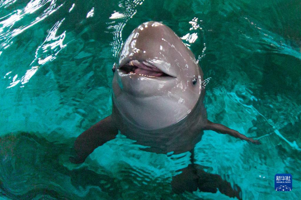 当日是中国科学院水生生物研究所白鱀豚馆人工饲养的小江豚(编号为F9C22)周岁生日,武汉市农业农村局、中科院水生所和武汉白鱀豚保护基金会在白鱀豚馆为小江豚庆生。