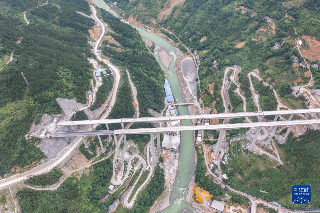 这是6月27日拍摄的巫镇高速公路二标段西溪河特大桥施工现场(无人机照片)。