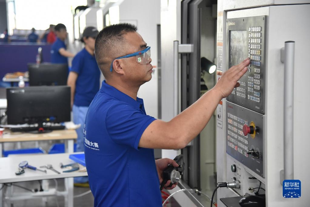 6月27日,参赛技术工人进行数控铣工技能比拼。