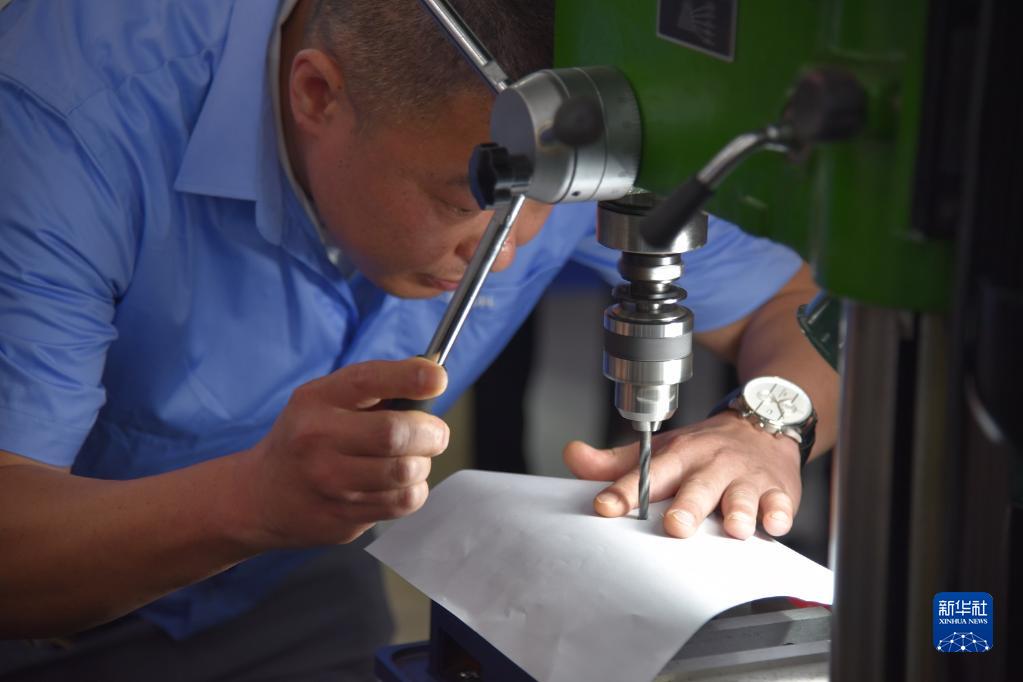6月27日,技术工人展示钻A4纸绝活。