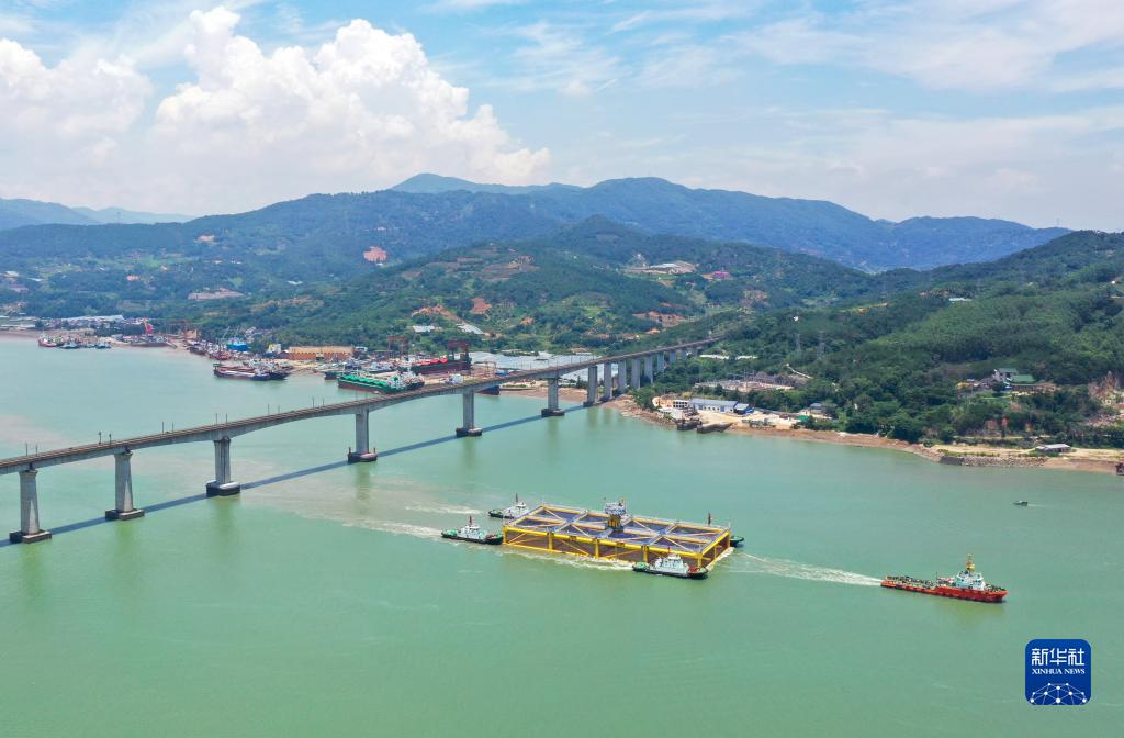 当日,大型深远海养殖平台“宁德1号”在福建福安拖航出海,驶向霞浦北礵岛海域养殖区。“宁德1号”主体长120米、宽56米、高12.5米,养殖水体达6.5万立方米,并装配自动投喂、气温海水监测、信息化自动控制等先进系统。