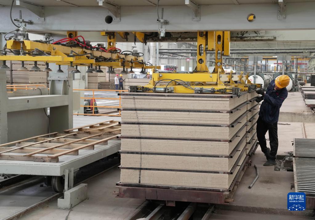 6月27日,工人在河北省滦南县一家新型建筑材料企业生产车间工作。