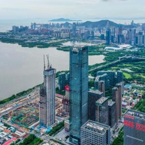 站在350米高处的深湾汇云中心空中平台,近处是深圳湾超级总部的一派繁华,一路之隔的海岸则是大片生态红树林。这栋超高楼宇的66层至79层就是伍涛团队正在打造装饰的一家国际著名品牌酒店。