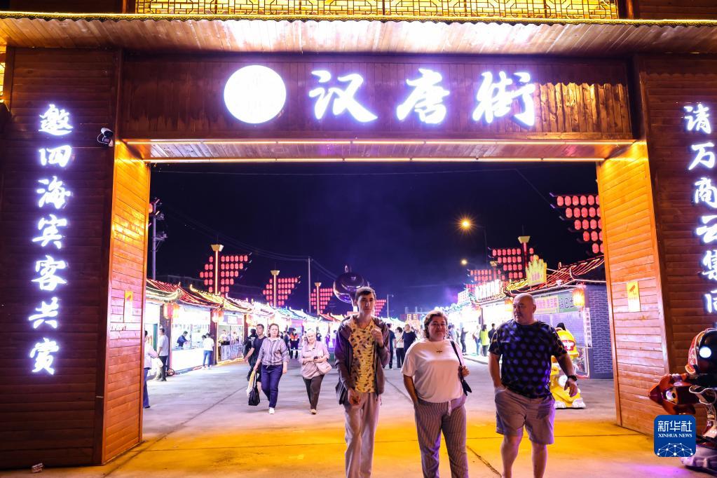 6月27日,俄罗斯游客在珲春市汉唐街夜市逛街。