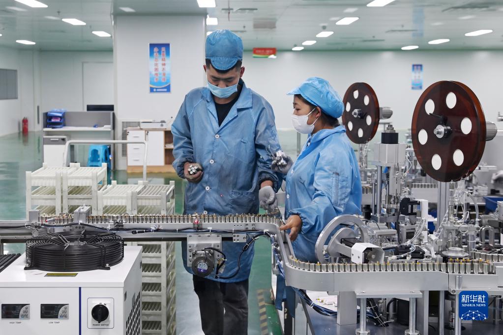 6月27日,在位于金昌经济技术开发区的甘肃金宏翔新能源有限公司,工人在18650电池生产线上作业。
