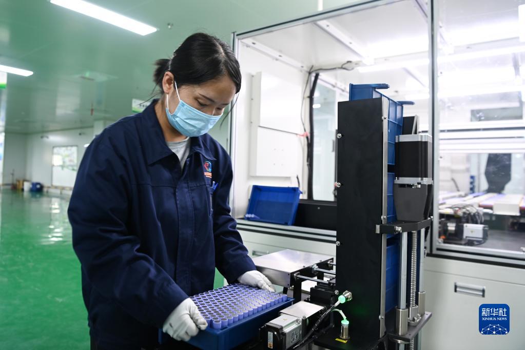 6月27日,在位于金昌经济技术开发区的甘肃金宏翔新能源有限公司,工人在18650电池生产线上作业。