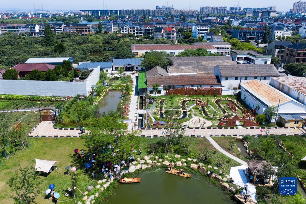6月28日,空中俯瞰塘栖镇丁河村的共富工坊(无人机照片)。