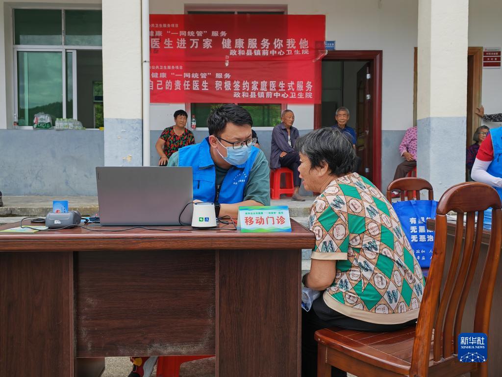 6月27日,在福建省政和县镇前镇西溪村,医务人员询问村民患病症状等情况。