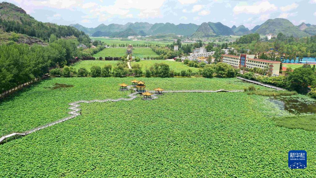 6月25日拍摄的贵州省黔西南布依族苗族自治州安龙县十里荷塘景色(无人机照片)。