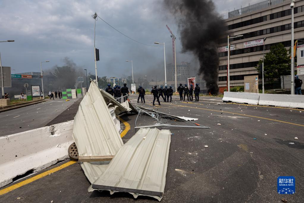 6月29日,在法国上塞纳省楠泰尔市,示威者与警察发生冲突。