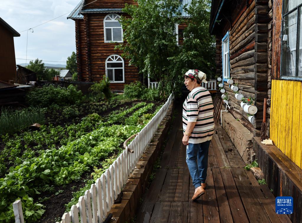 6月28日,卓娅在自家开的家庭旅馆中查看小菜园。卓娅一家从2003年开始经营家庭游,从最初的4间客房已经发展为24间,还能提供旅游项目服务。